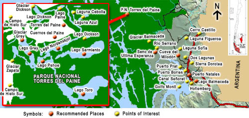 This National Park has an spectacularly beautiful landscape, trails qualified to do trekking, and thus travel through different scenarios of pampas, black magallanean forests, lakes and lagoons with icebergs and imposing glaciers, all of this surrounded by huge rocky masses that characterize the figure of the Torres del Paine. Nirre and lenga forests cover the huemules, condors, nandues (South American ostriches) and guanacos. The park is located in the Magallanes Region and the Chilean Antarctica, which capital city is Punta Arenas. It is located at 3.090 km to the south of Santiago, and at approximately 3 hours and 45 minutes by plane.