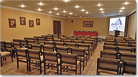 | Our welcoming main hall can be divided with an acoustic partition into 2 sectors. One of them is the hall “ Río Pingo” conditioned for meetings with capacity for 70 people in auditorium style, 50 people in school style and 40 people in imperial style. The hall counts on independent amplification and black out blinds for the total darkness of the windows, all this with a beautiful background of paine massif. Hall Equipment: Data show, slide projector, podium, coffee break service. Moreover the hotel has international direct dialing phone and internet service. |